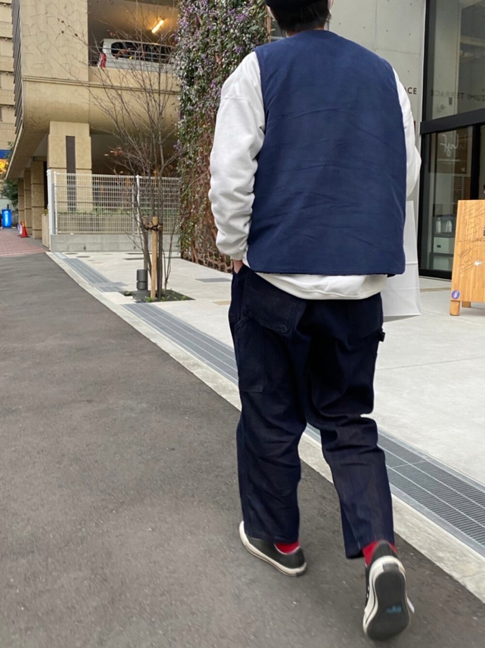 赤靴下。 スウェット×ベスト。