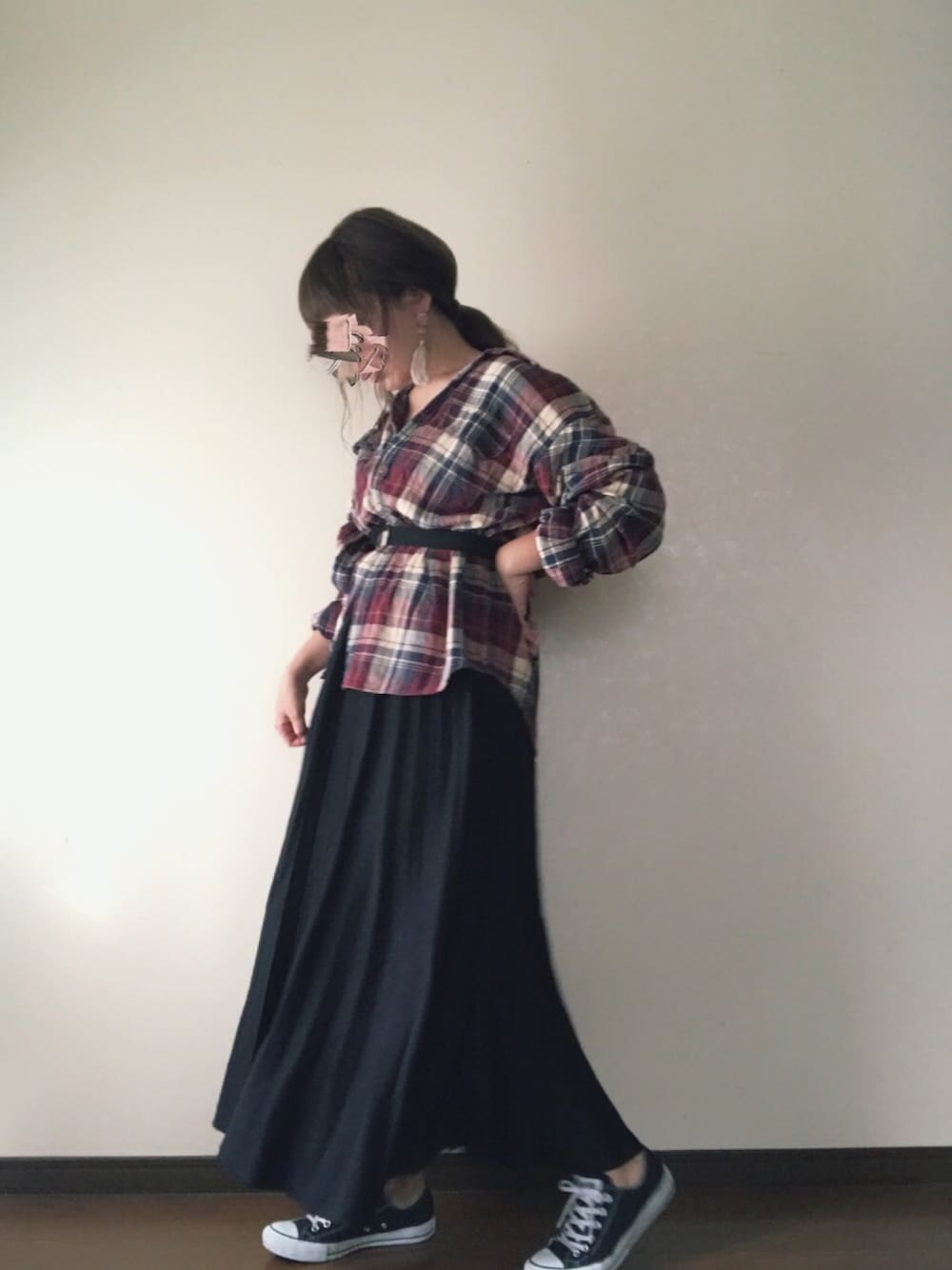 見ていただきありがとうございます! USEDのネルシャツコーデ。 くたっとゆるっとな感じが好きです🧡