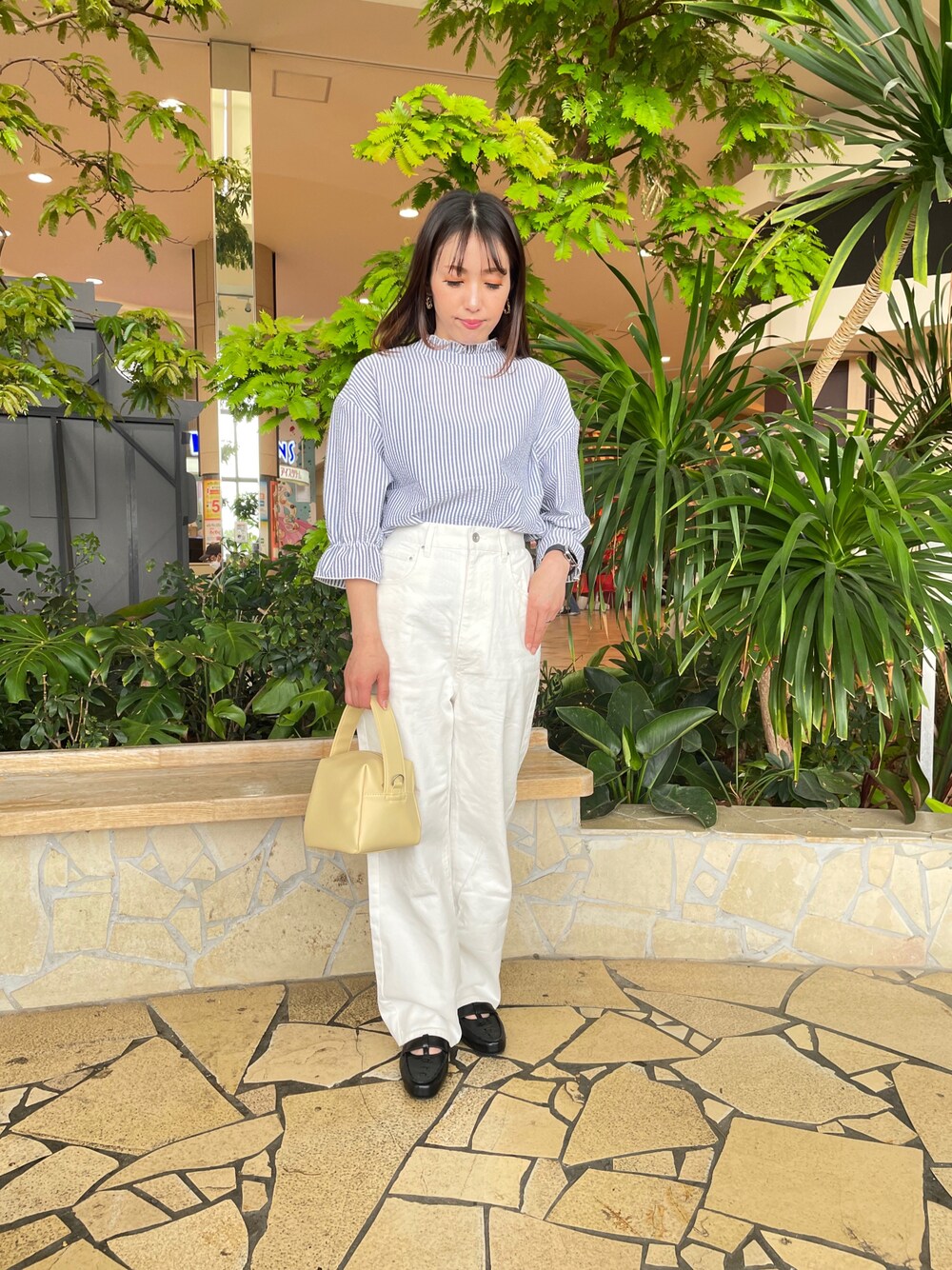 たまにはカジュアルに💨 ブラウスは2wayになります🙋🏻♀️ ストライプになっており、ボリューム袖でも甘過ぎず、着て頂けます✋ 肌触りも🙆♀️ ホワイトデニムで春らしくしてみました🤘🤘