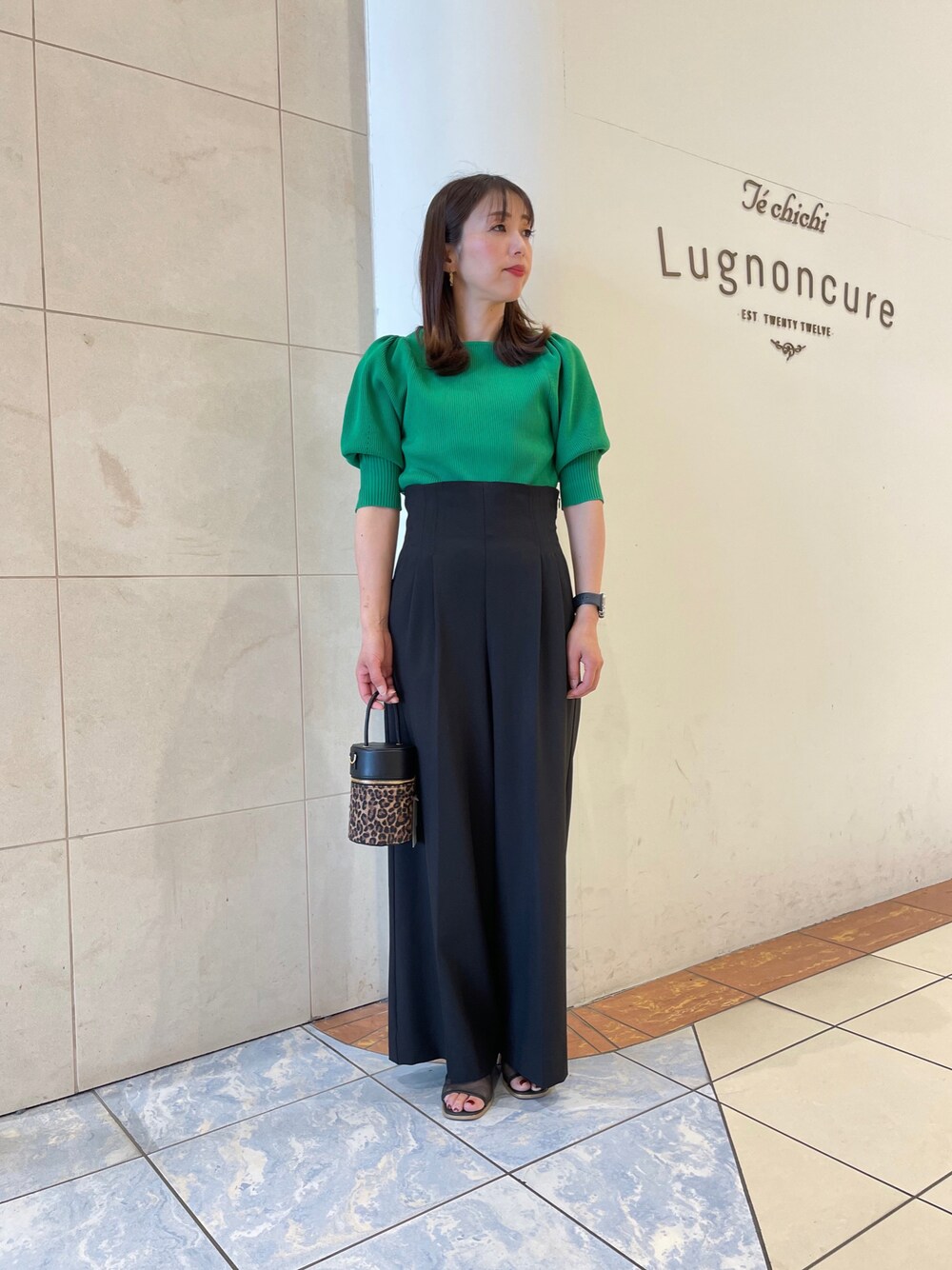 綺麗なお色のニット🧶 お袖のボリュームも腕周りをカバーしてくれて、二の腕カバーに🙆♀️ お気に入りのハイウェスト👖は 足長効果が👌