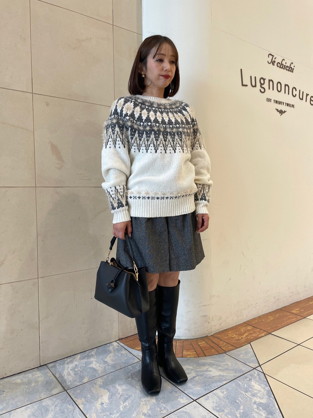 🧸chiha🧸のニット/セーター「フェアアイル柄ニットプルオーバー」を使ったコーディネート
