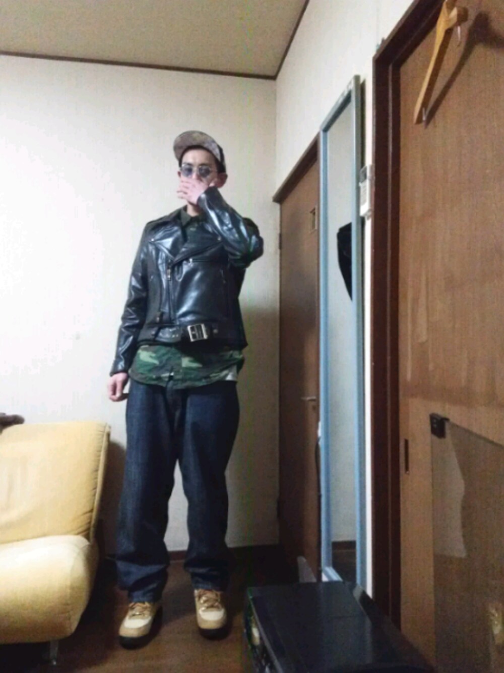 ルーズストレートのデニムで、シルエットに変化を 加えてみた。 やっぱ太めのボトムスは、はいてて楽ちんだなー
