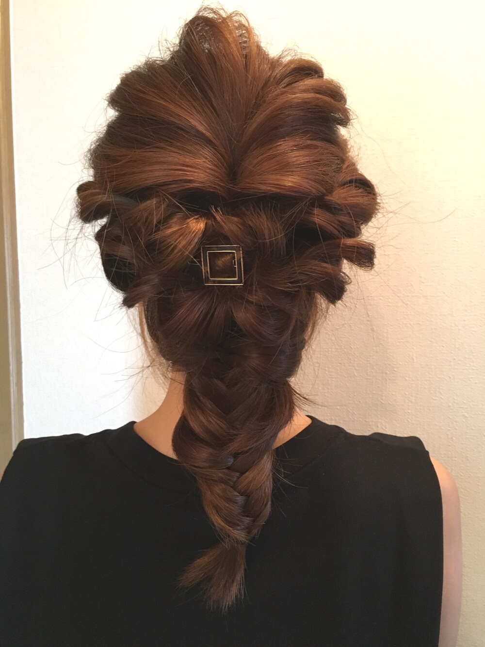 ちょっと前に友達にやった ヘアセットです👍🏻 . お粗末ですみません😂😂 . フィッシュボーンにハマってて 最近よくやりますᗦ↞︎◃︎