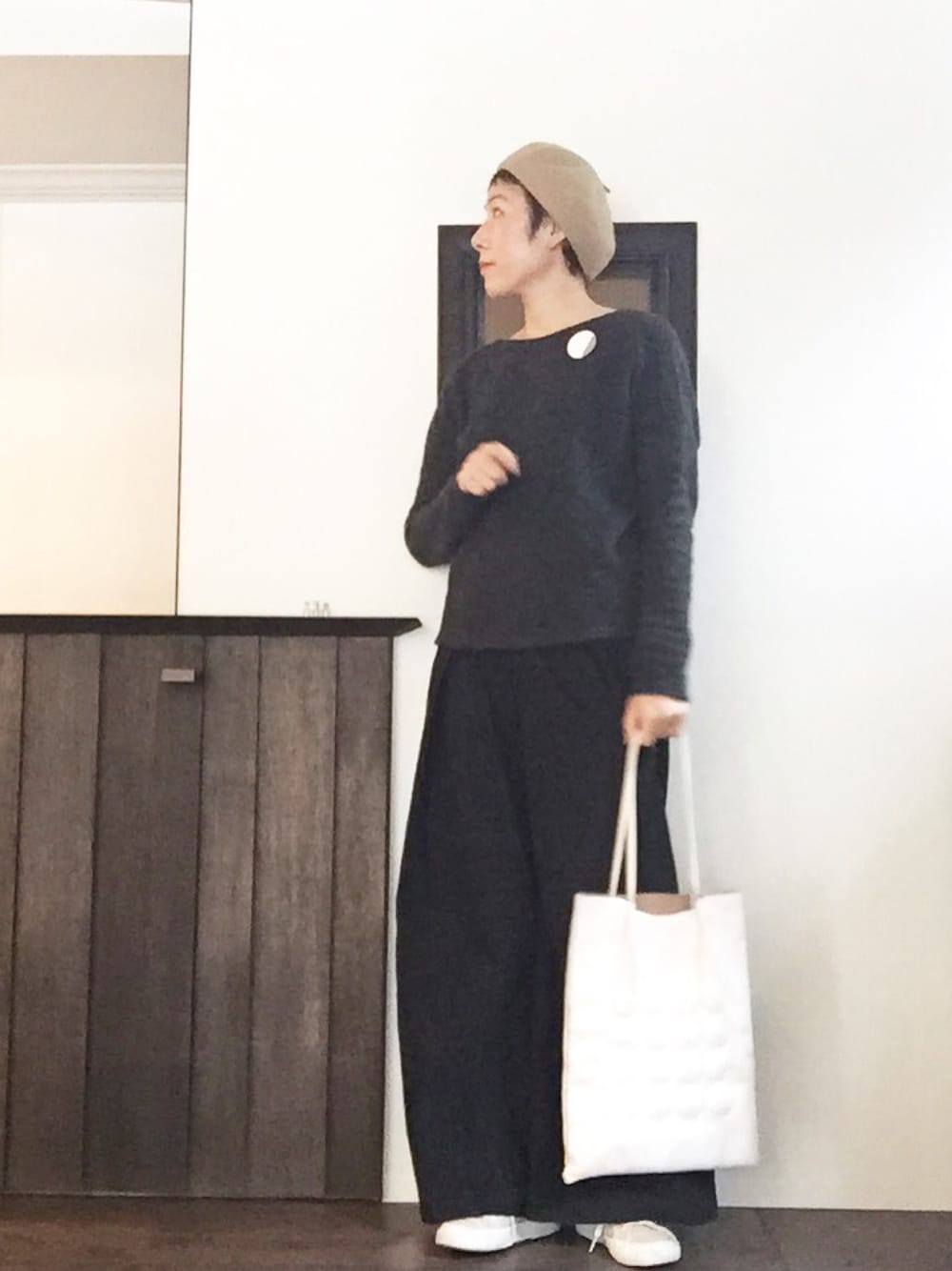 新しく新調した個性的なバッグ。 1点もの。 シンプルなコーデも白のバッグで引き締まって嬉しい。