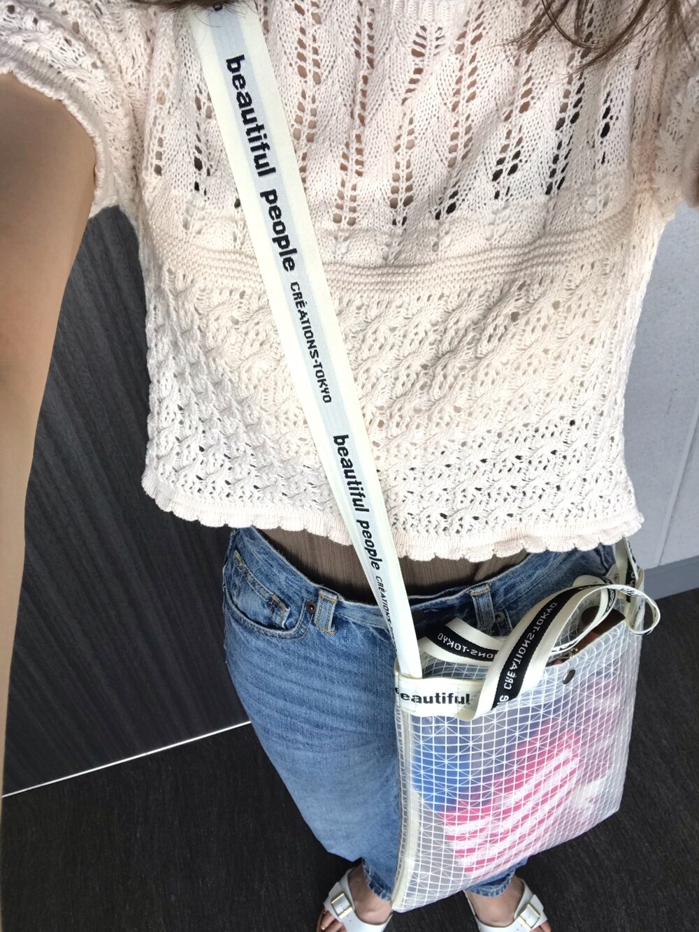 コンパクトなトップスにはハイウエストデニムを合わせるのが好きです。 ビルケンとビニーバッグでカジュアルに⚽️