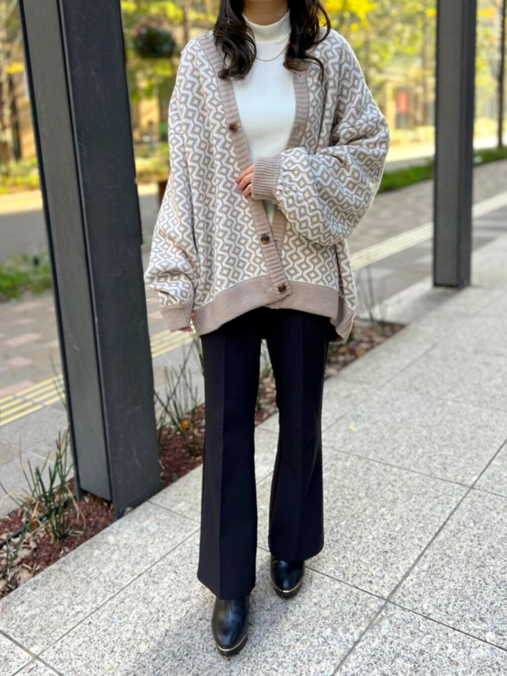 Nuuのカーディガン/ボレロ「Balloon Sleeve Big silhouette Bird's eye pattern Knit Cardigan/バルーンスリーブ ビッグシルエット バーズアイ柄 ニット カーディガン/カーデ」を使ったコーディネート