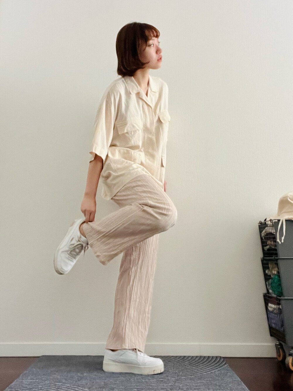 2023.08.07 出勤コーデ 曇りで肌寒そうだったので6のしっかりめ襟付きトップス!