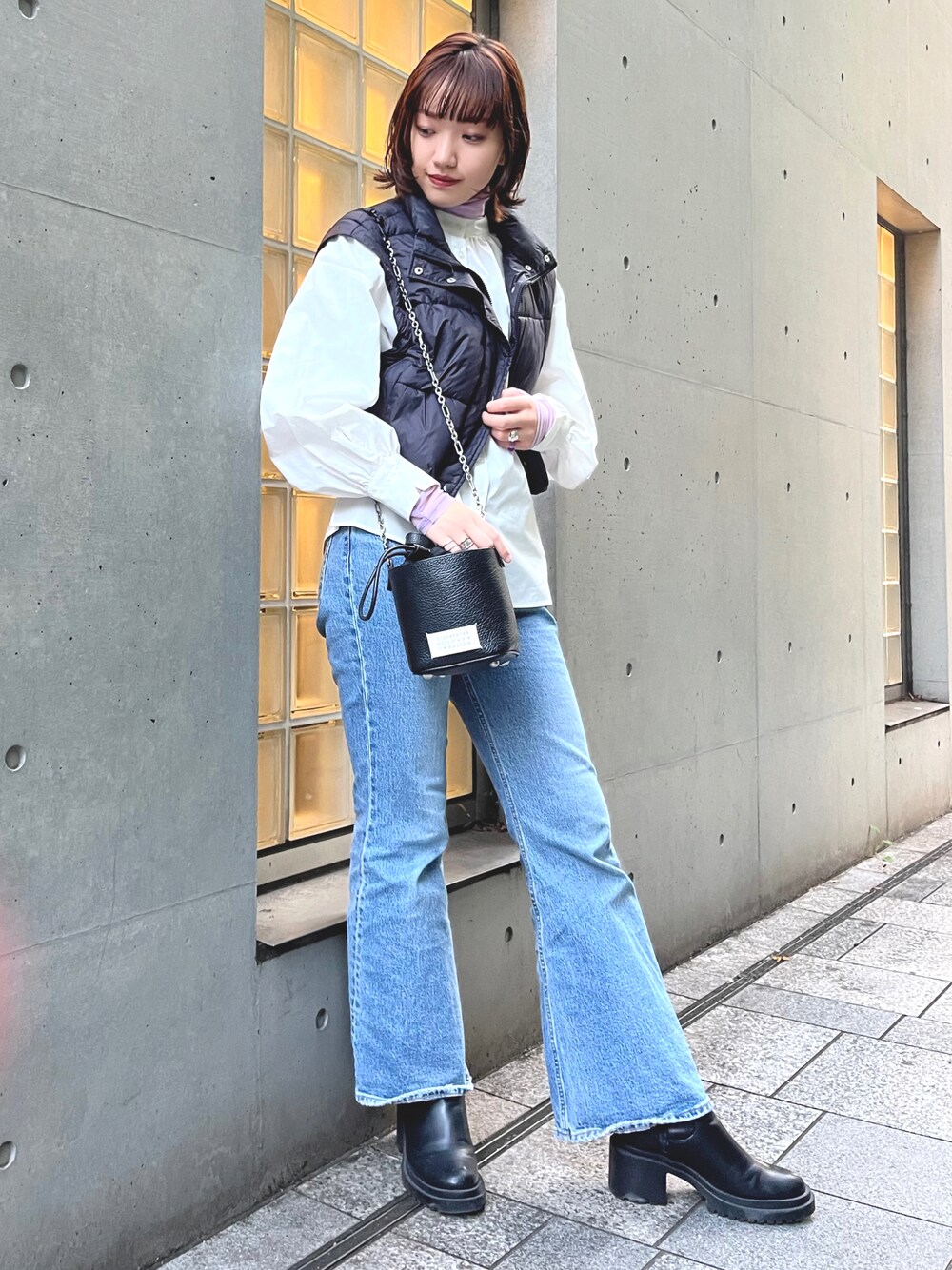 ママとおデートコーデ🖤 暑かったり寒かったり大変なので袖がセパレートになるダウンベストが役立ちました🔥
