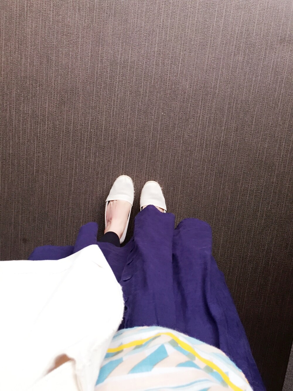 おはようございます☆ 気持ちの良い朝です。 鮮やかなブルーに柄ブラウスで金曜日をがんばります!