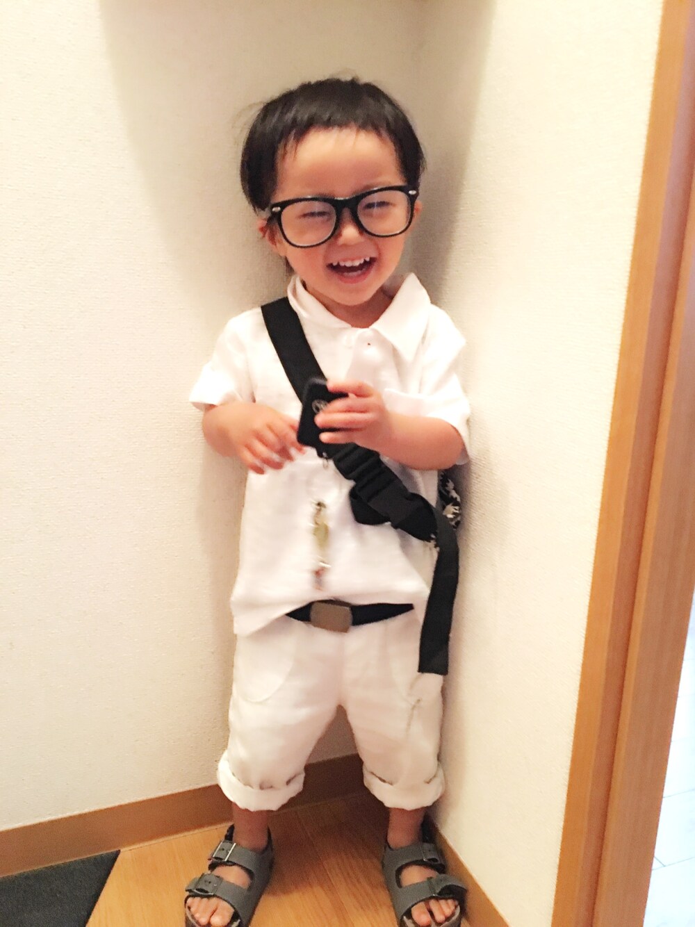 初挑戦の白×白。パンツにベルト紐が付いてなくて、そのままカポッとはめてます。あれ、あれれ?これって黒帯柔道着…😱 あれこれ調整して何とか見れる感じになった(笑) 髪切り担当のパパがまた!前髪切り過ぎ&ガタガタ。毎回毎回やらかしてくれます。下手くそなくせにやりたがるから手に負えない😤まったくー!