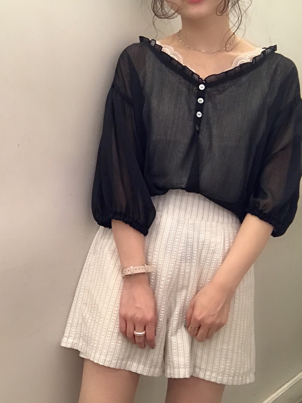 にわちゃんのシャツ/ブラウス「楊柳フリルトリムブラウス ●*」を使ったコーディネート