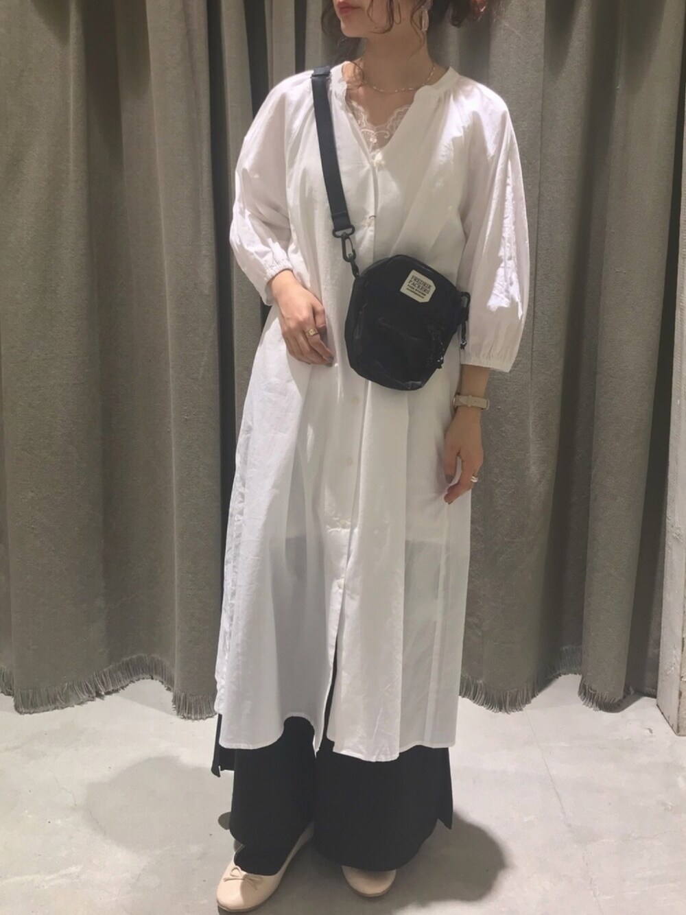 にわちゃんのワンピース「ギャザーロングシャツワンピース*」を使ったコーディネート