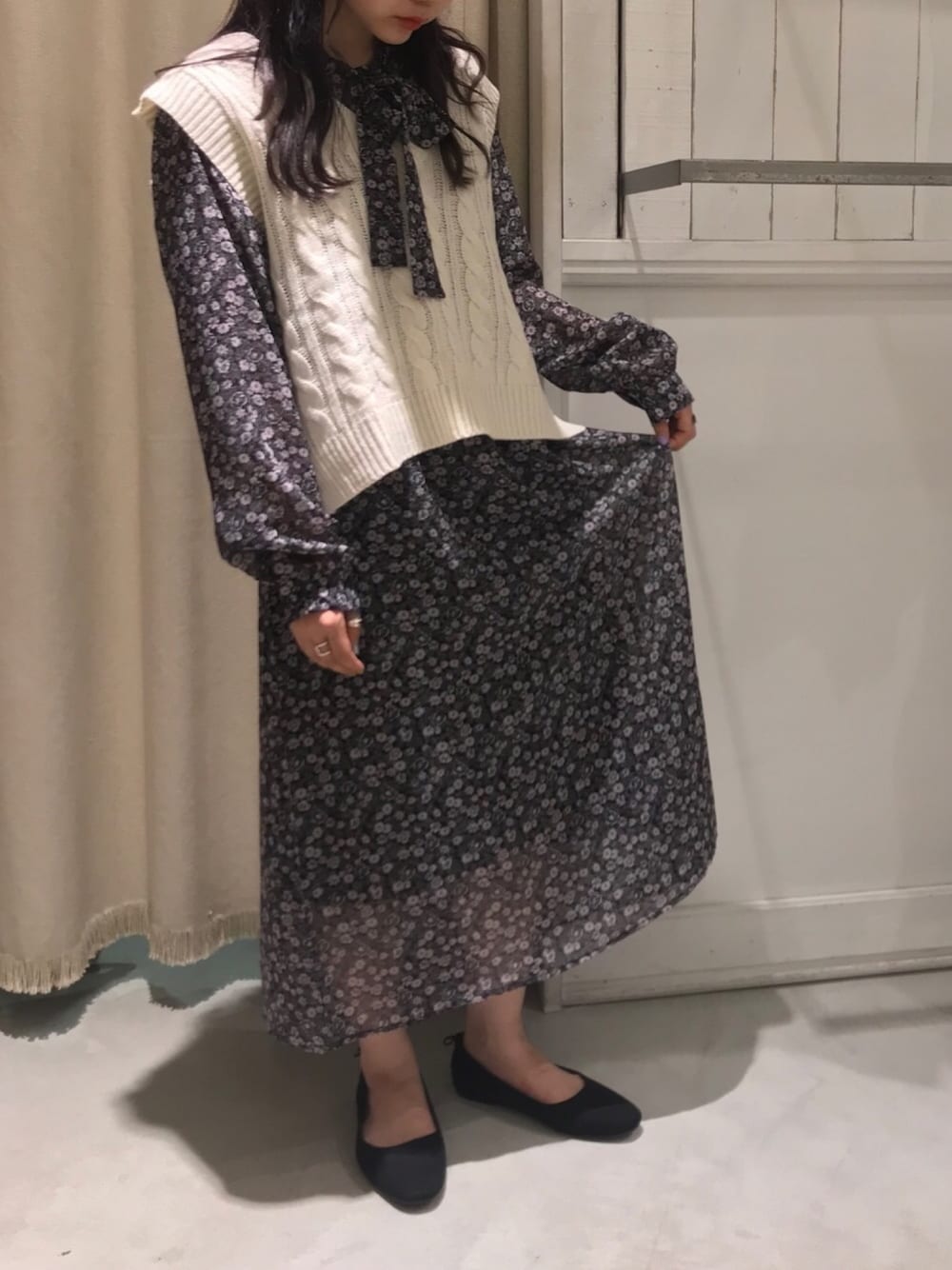 にわちゃんのワンピース「花柄ボータイワンピース *」を使ったコーディネート