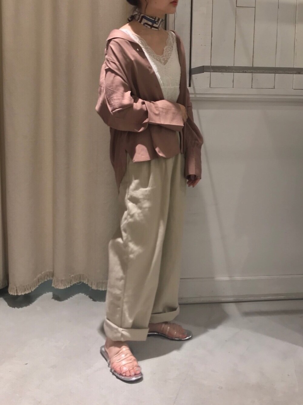 にわちゃんのシャツ/ブラウス「ドロップショルダー開襟シャツ*」を使ったコーディネート