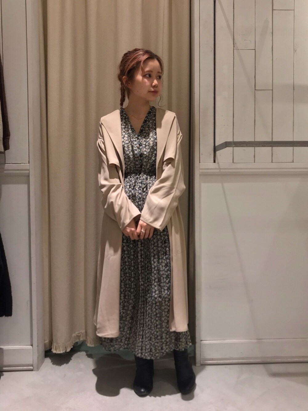 にわちゃんのワンピース「花柄Vネックプリーツワンピース*」を使ったコーディネート