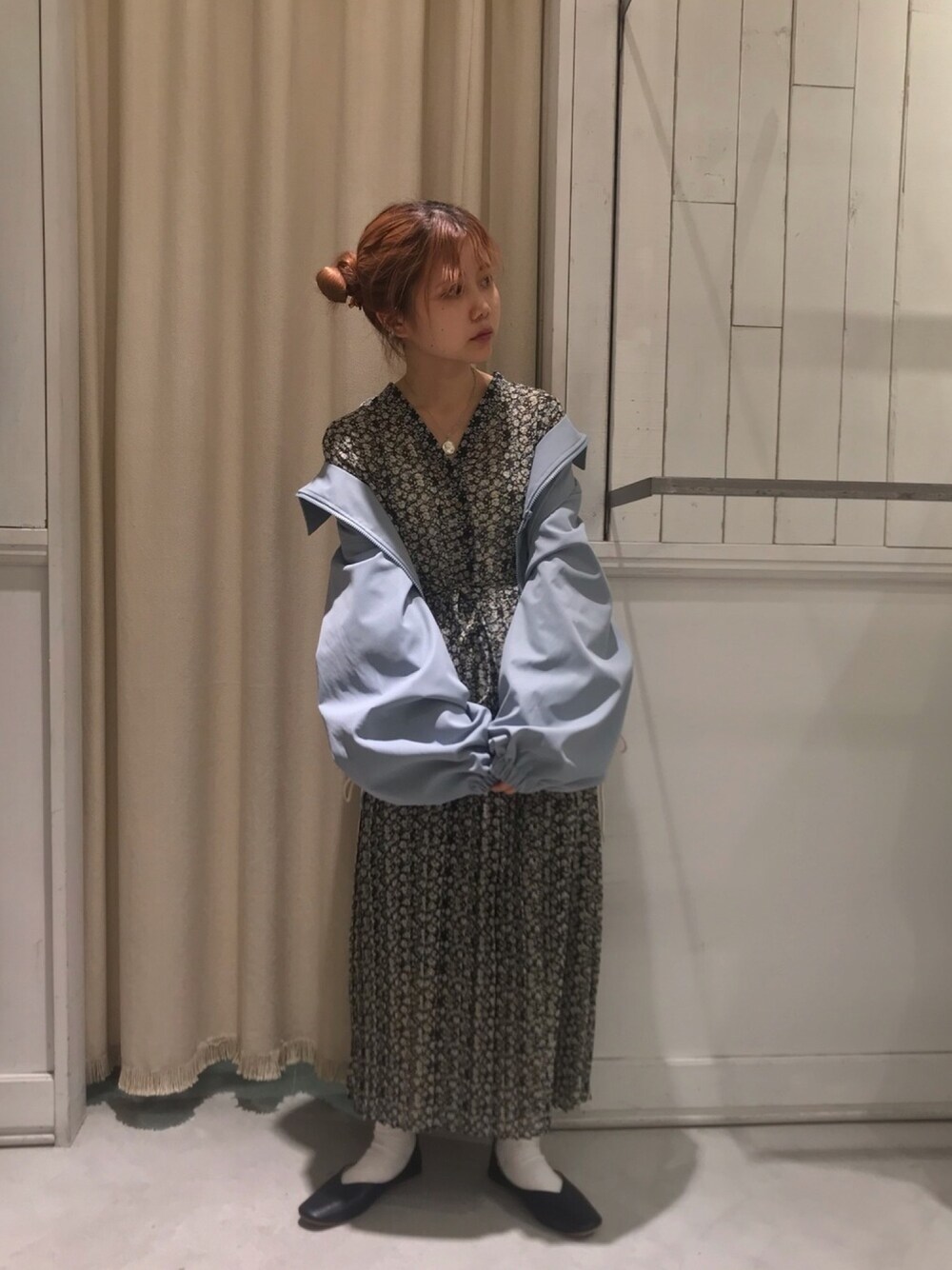 にわちゃんのワンピース「花柄Vネックプリーツワンピース*」を使ったコーディネート