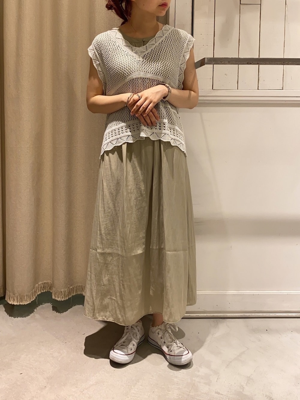 にわちゃんのベスト「レーシー編みニットベスト*」を使ったコーディネート
