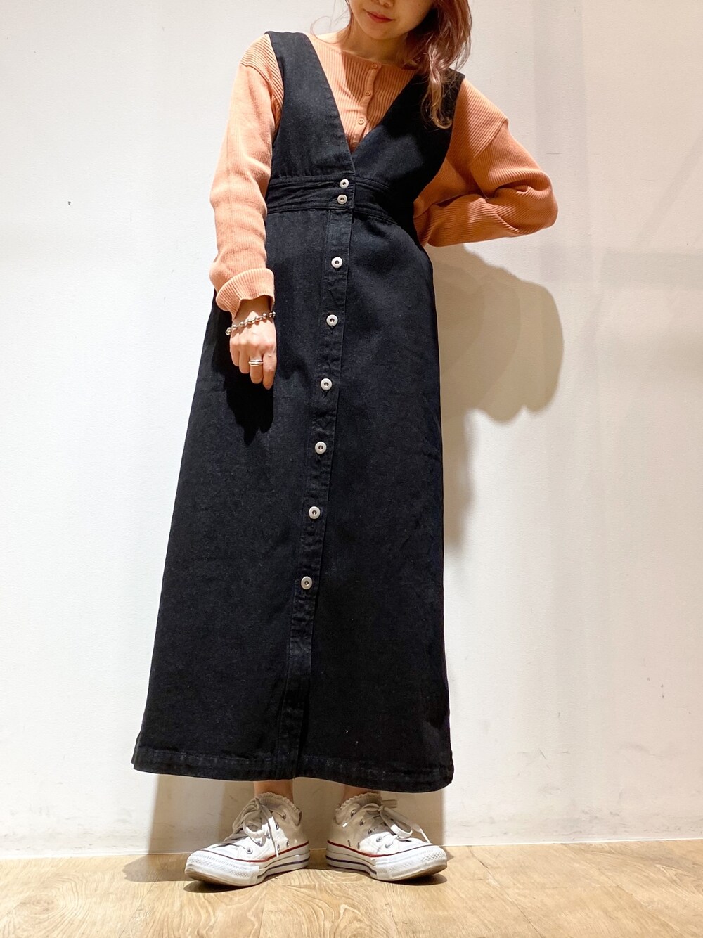 にわちゃんのジャンパースカート「・SUGAR SPOON Vアキデニムジャンスカ*」を使ったコーディネート