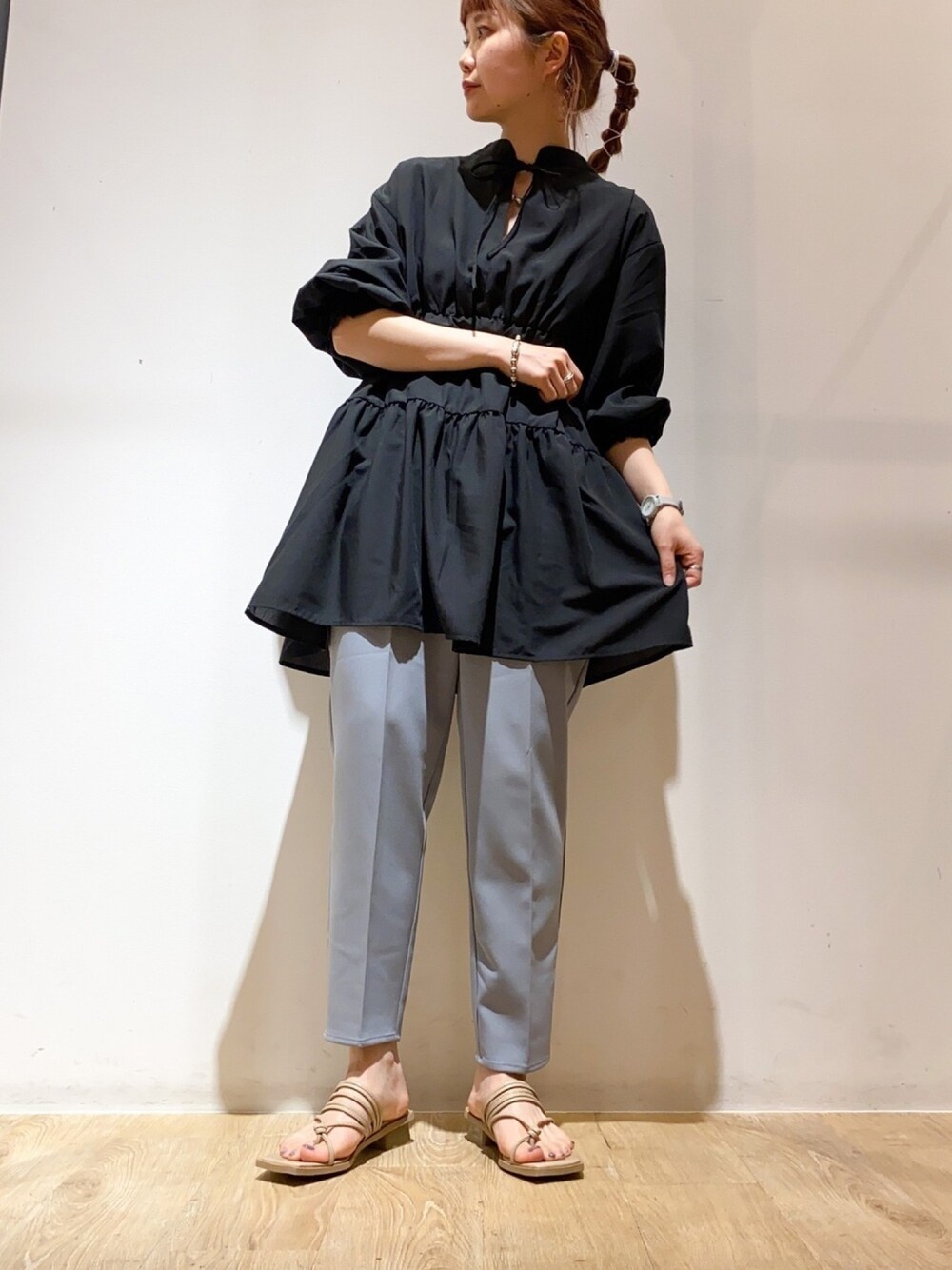 にわちゃんのサンダル「台形ヒールナローストラップサンダル*」を使ったコーディネート