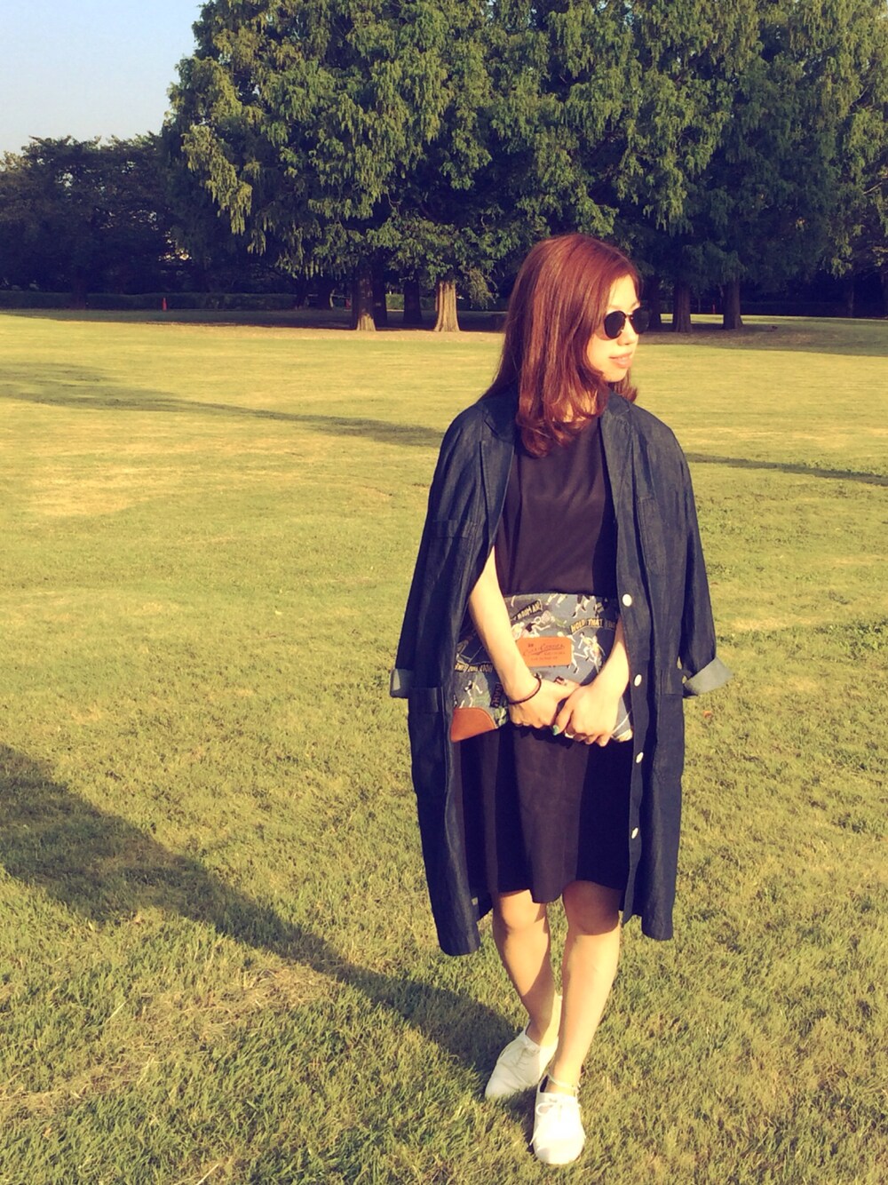 ・デニムコート PAR ICI ・ワンピース PAR ICI ・クラッチバッグ BEAMS BOY ・シューズ apart by lowrys