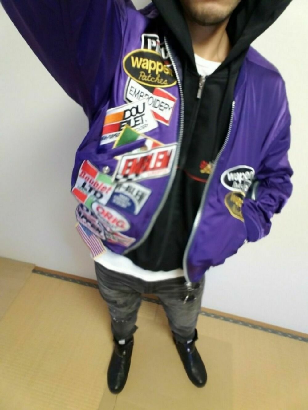 こーんーにーちー波ぁ!! あっ、 すいません。 なんか 今日 かめはめ波打てる気がして練習してたら かめはめ波風の挨拶に…(爆) 前回のコーデ、閲覧・いいね・お気に入りありがとうございますm(_ _)m なんとなく 昨日載せたコーデ+αを撮ってみました。 インナーをTシャツからロンTに。 脱着メンドイから(爆) +αでdoubletのMA-1を。 これ何が凄いって ワッペン重なってるんやなくて1枚なんです。 繋がってます。 仕事が細かいッス。 色もいやらしくて好きッスw