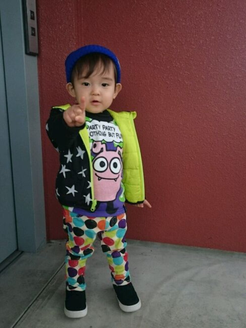 こんにちは(^o^) 今日は息子から写真ーって言われて、 ほら、ピーーース! って言いながら人差し指立ててました! 中指じゃなくて良かった(^^;笑 今日は派手めコーデ。 このトレーナーが大好きな息子と、 あまり着せない母ちゃん。 水玉×星×partyの宇宙人? だいぶ忙しい感じの柄コーデですね(^^; 今日も雨なのですが、 メガネも傘も昨日実家に忘れてきたので 取りに行ってこようと思います、 うるさいので( ´,_ゝ`)笑