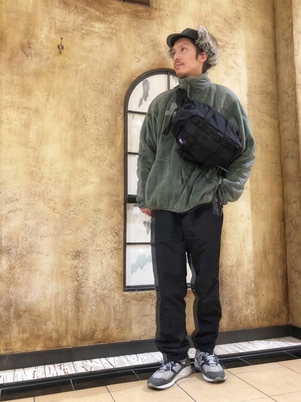 ストリート感ある新作のTNFパープルレーベルのウエストバッグがポイント💁♀️ なんだけどバッグの向きひっくり返ってるな🤔 フリースとかウールニット着る時はナイロンやベロア等の光沢ある素材をしっかり取り入れてバランス良く⚖