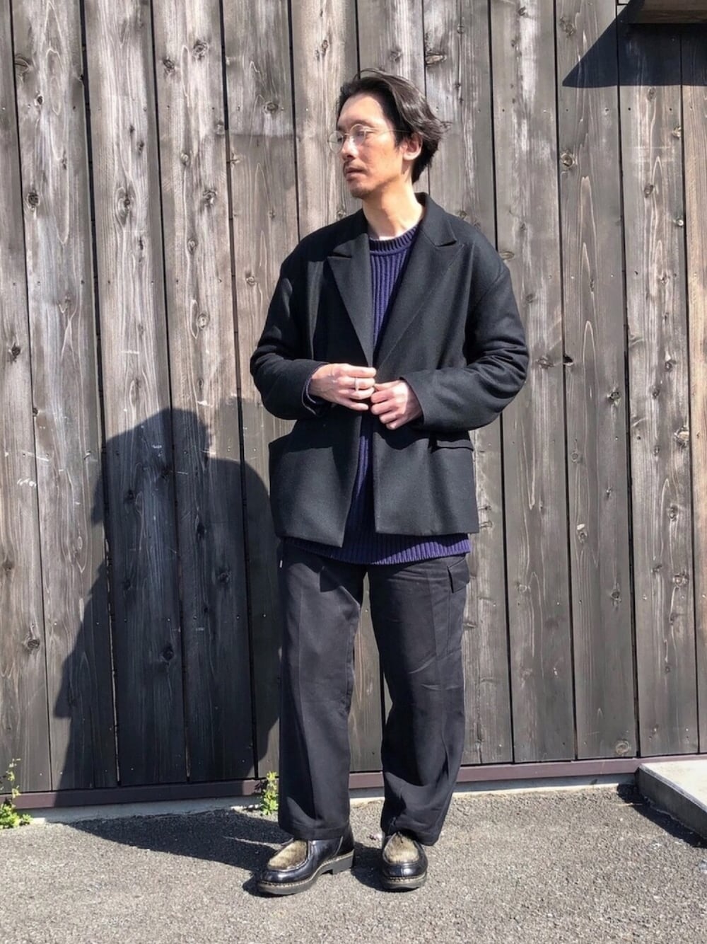 YMNのメガネ「10 EYEVAN No.3」を使ったコーディネート