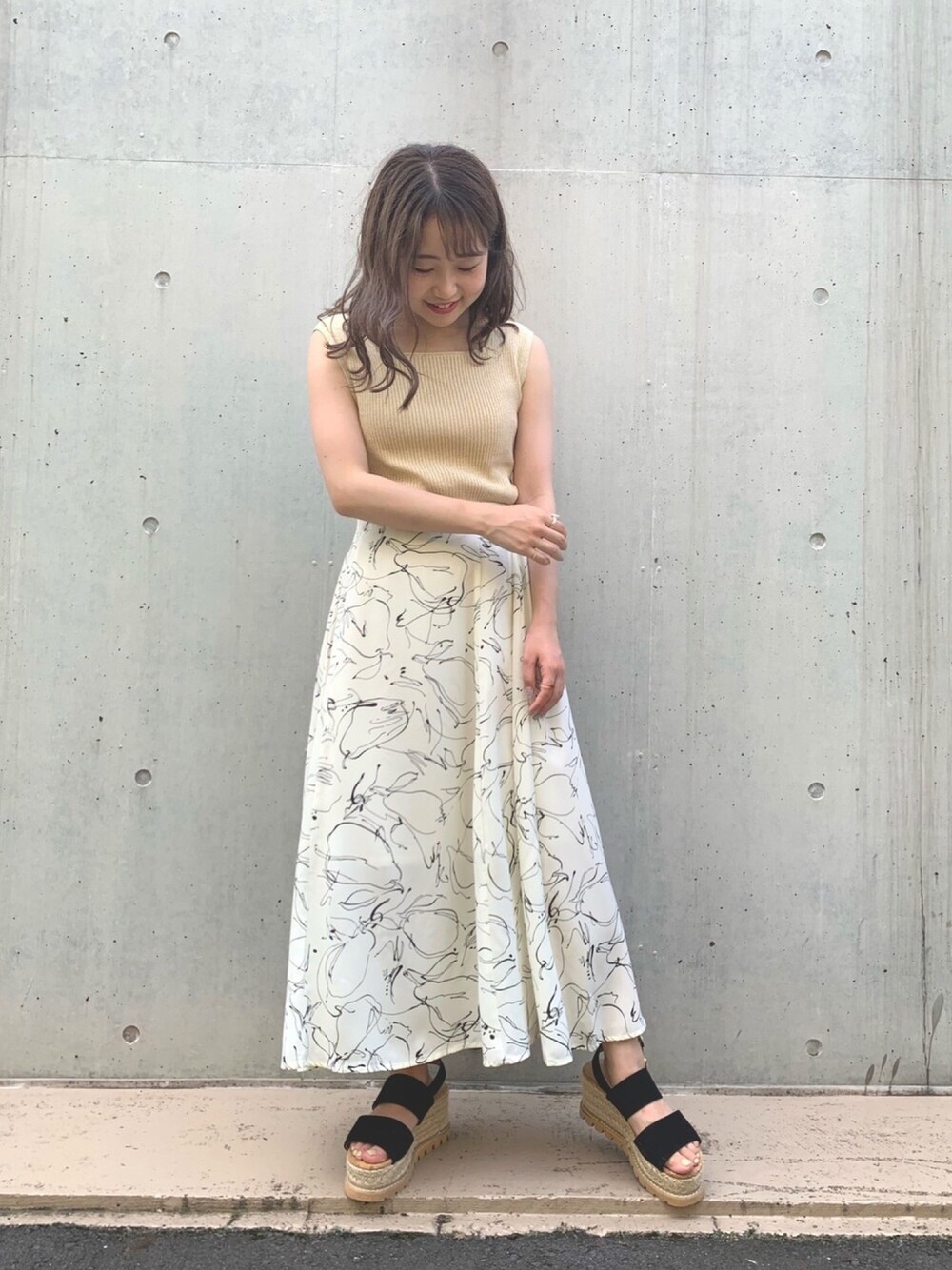 お久しぶりの投稿です! 久しぶりすぎてすみません💦笑 【夏の大人な休日コーデ】 ノースリーブに今年トレンドの線画柄スカートを合わせました! ホワイト×ベージュ 私の大好きな組み合わせです♥ サンダル合わせたら、もう大人な夏のコーデですね✨ これからまた投稿頑張る予定なのでぜひ見て下さい!😊