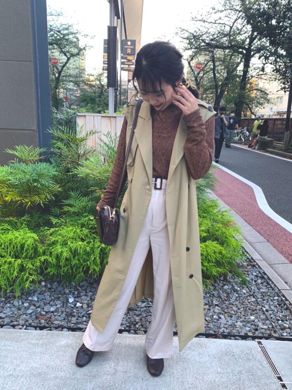 【秋のトレンチコーデ🎶】 いつものコーデに、ノースリーブトレンチを合わせるだけでワンランク上のオシャレコーデに仕上がります🧸 色も、カーキやブラウンといった秋を意識したカラーにしてみました😊 このトレンチはお気に入りなのでこの秋、沢山着たい…🤍💭