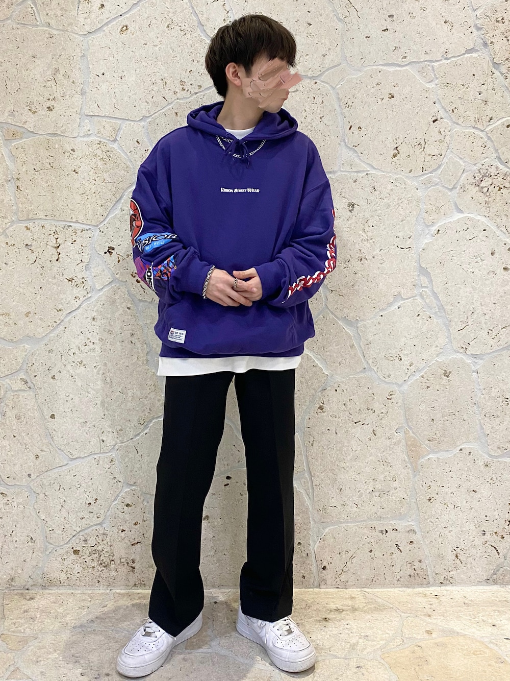 ストリート×きれいめ ダボっとしてるスウェットに きれいめのフレアパンツを合わせました! このフレアパンツは スタイル良く見えるのでおすすめです!