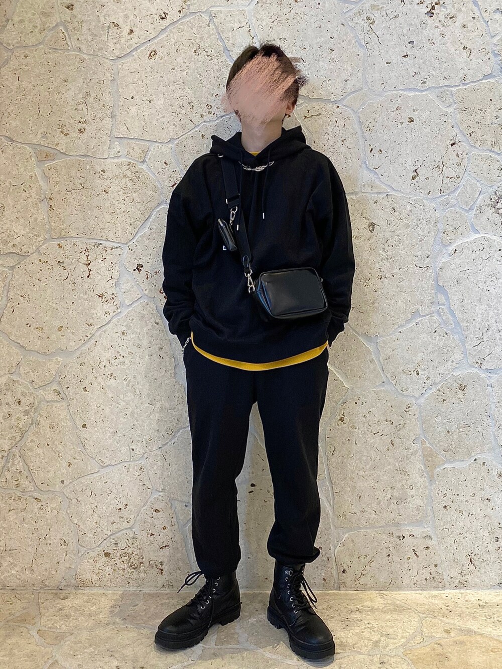 スウェットセットアップ ブラックのスウェットでシックな印象に 差しでイエローのロンTを入れました😇 ワンポイントで色を入れるのが自分の中で ブームになってます笑 楽に着れて、動きやすいのでオススメです https://right-on.co.jp/staff-profile/093897 ここからアイテム確認できます✔️