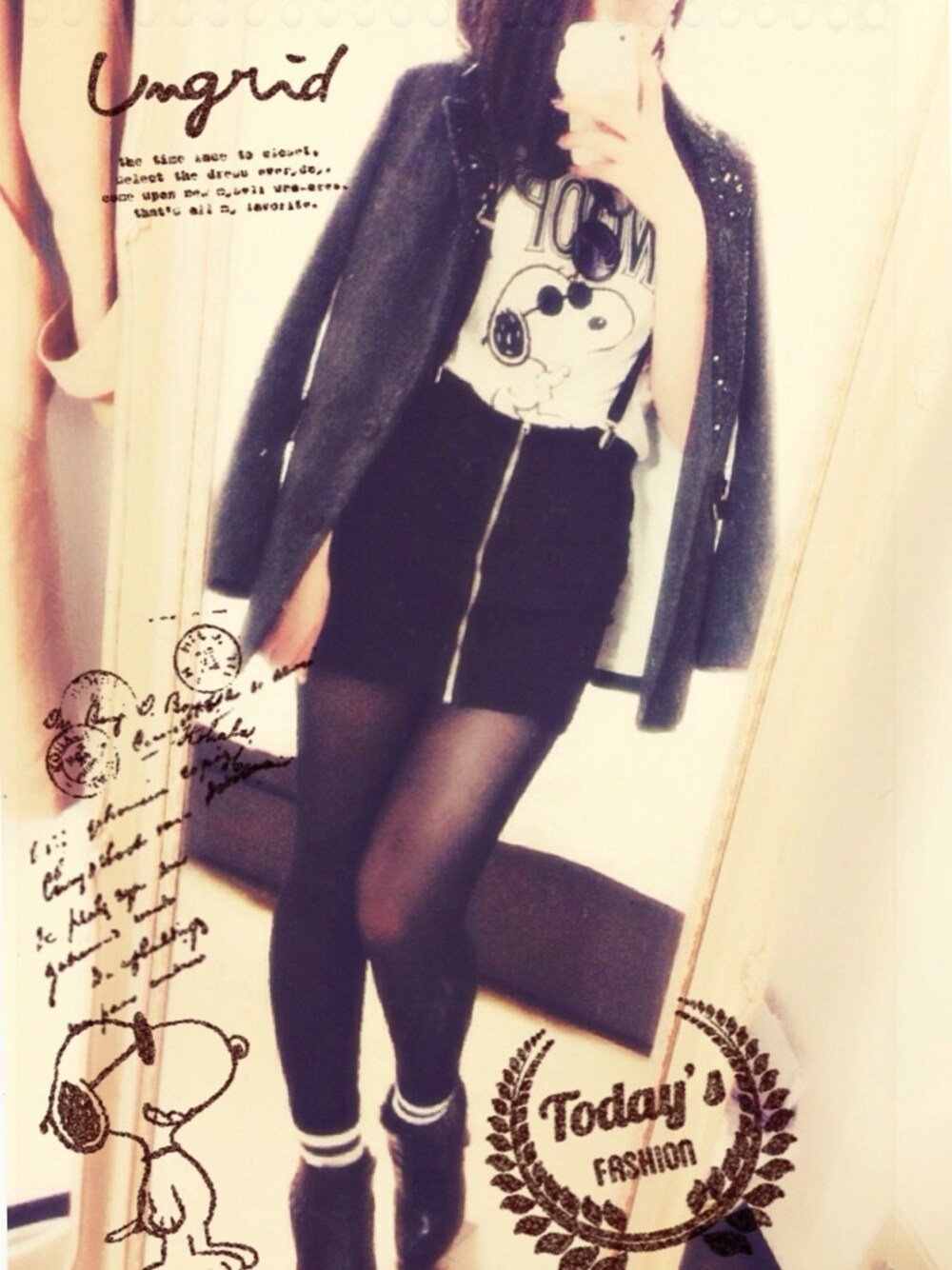 today's style❁ Jacket≫ungrid T-shirts≫UNIQLO Skirt≫H&M Suspender≫Andemiu Boots≫??? save&followありがとうございます♡ 今日はモノトーンで大人っぽく♬ 髪暗めにしたからちょっと パンクっぽくなってまうな_(:3 」∠)_ だいぶあったかくなったけん 明日はこの前買ったセットアップ 着ようかなあ♡