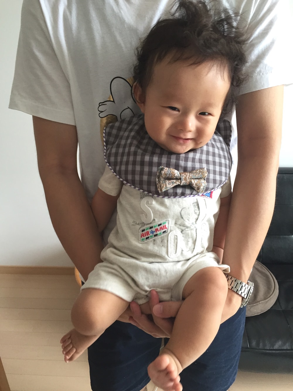 リボンじゃなくて蝶ネクタイだよ、男の子です。