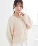 柔らかいピンクカラーで可愛いカーディガンにアイボリーのボトムス合わせでガーリーコーデに🎀💭