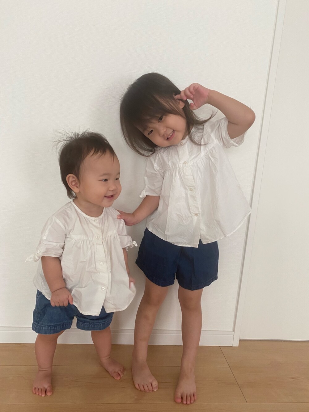 おそろコーデ👚✨✨ 寝起きで髪の毛ボサボサ🤣 それもアリでしょ😚💕