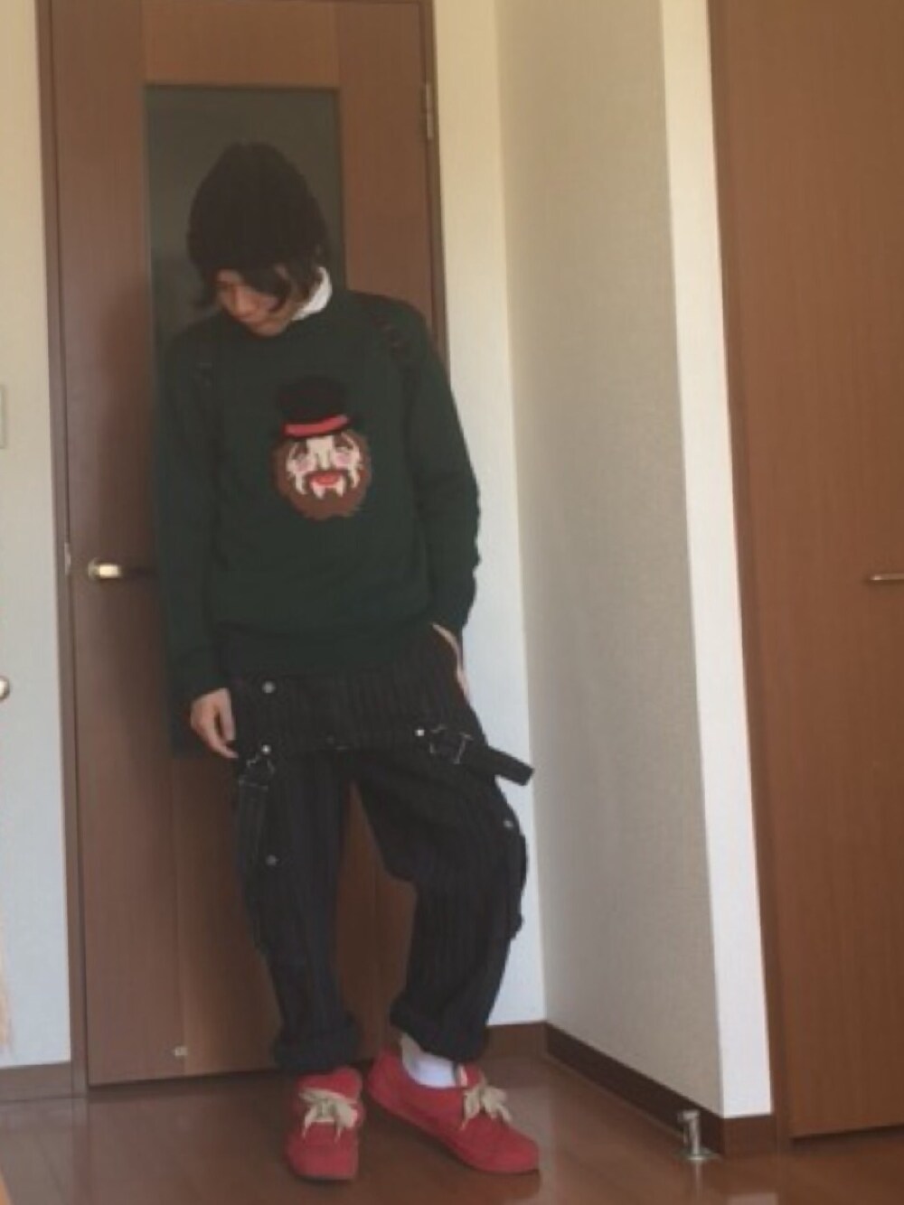 お久しぶりですっ♪ 今日は .efilevolの可愛いおじさんニットセーターと nobrandのオーバーオールで 春コーデをUPしてみました‼︎ 足元は赤のスニーカーと白ソックスで♪♪ 早く春にならないかな〜