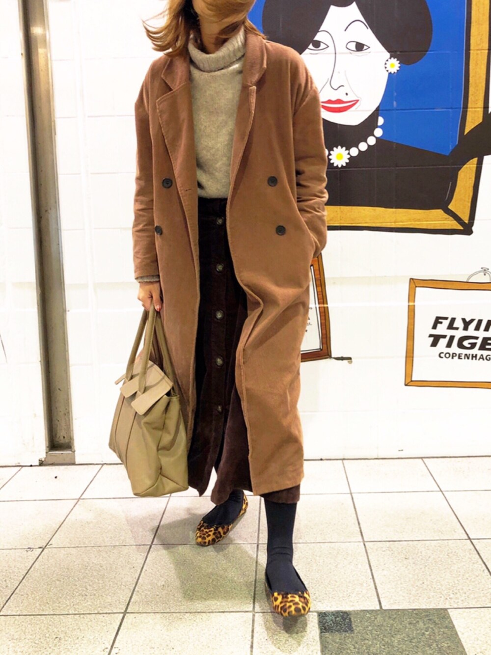 nyaobuのチェスターコート「コーデゥロイオーバーコート」を使ったコーディネート
