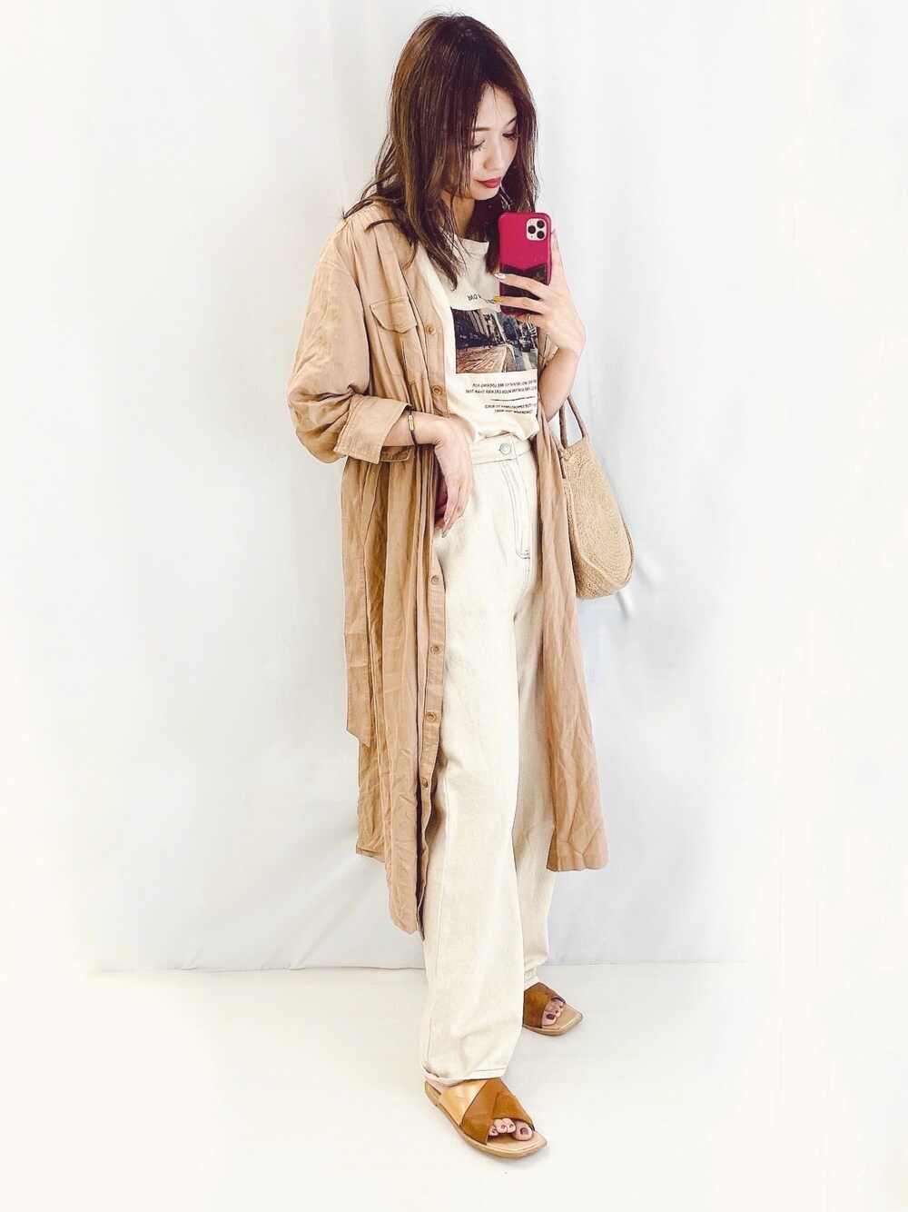 ベージュ×白 ラフで動きやすい✨シャツワンピでキレイめアプラス☺️