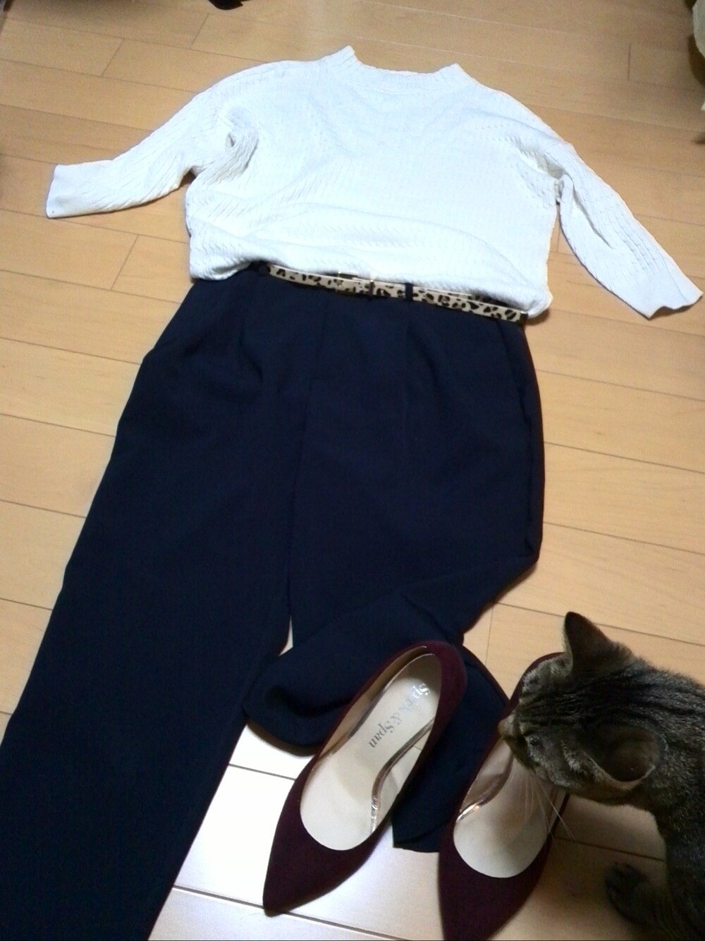 にゃろなのトップス「(GU)ボトルネックセーター(ケーブル・7分袖)」を使ったコーディネート