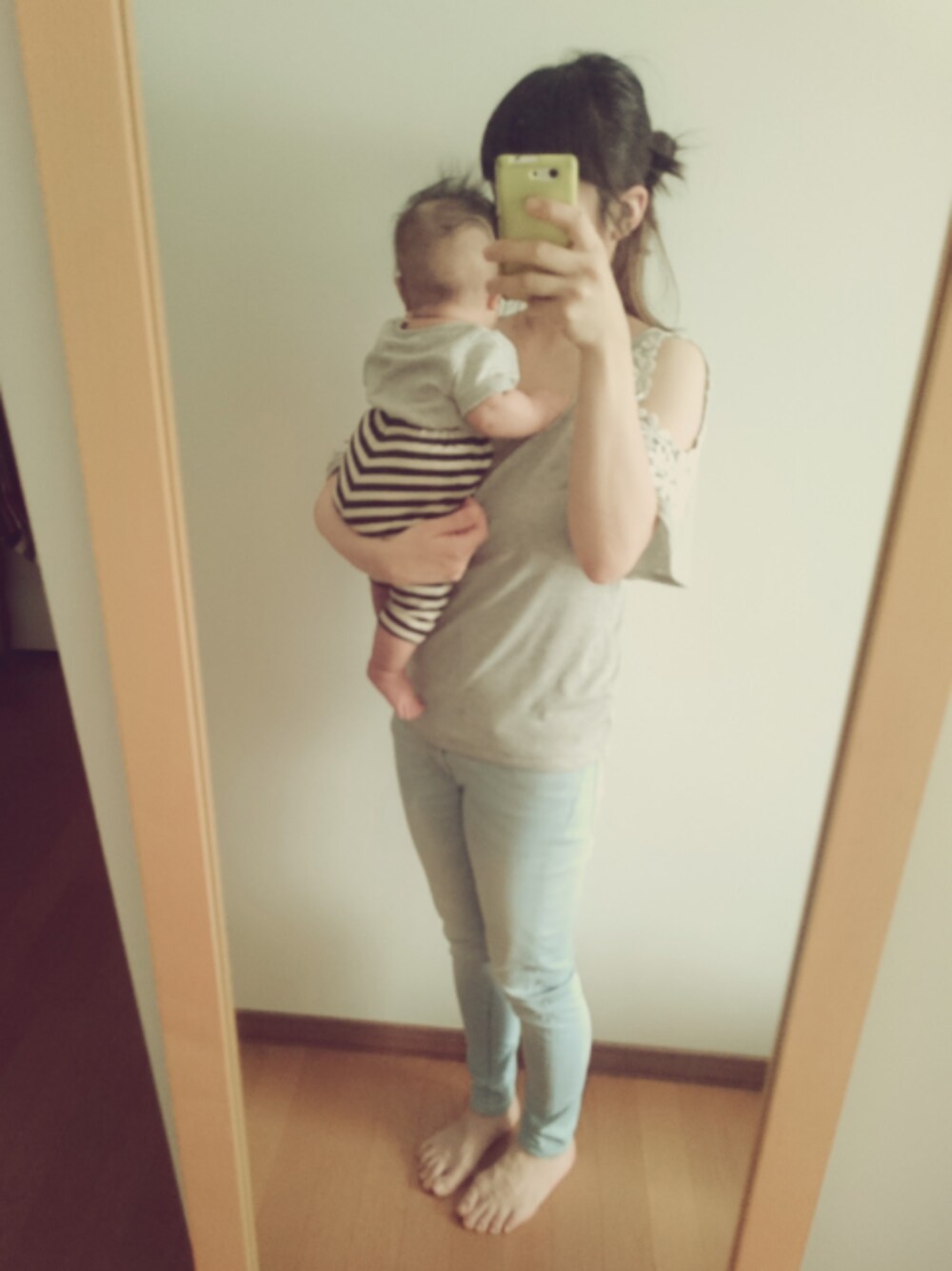 出産後初の投稿☺💕 おちびと👶💕 こんなに大きいけれど3ヶ月です👶💕 男の子みたいなコーデだけど女の子です😂 Tシャツインした方が抱っこの時におなか出なくていいのですよね~😂 気づけばトップスのカラーリンクしてた😚💕 今日も見ていただいてありがとうございますっ🙏💕💕💕
