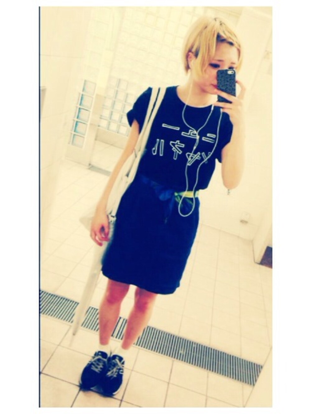 Tシャツ:大竹伸朗 スカーフ:JUNKSHOP トートバッグ:ASOKO スカーフをベルト代わりに巻いた〜🎀
