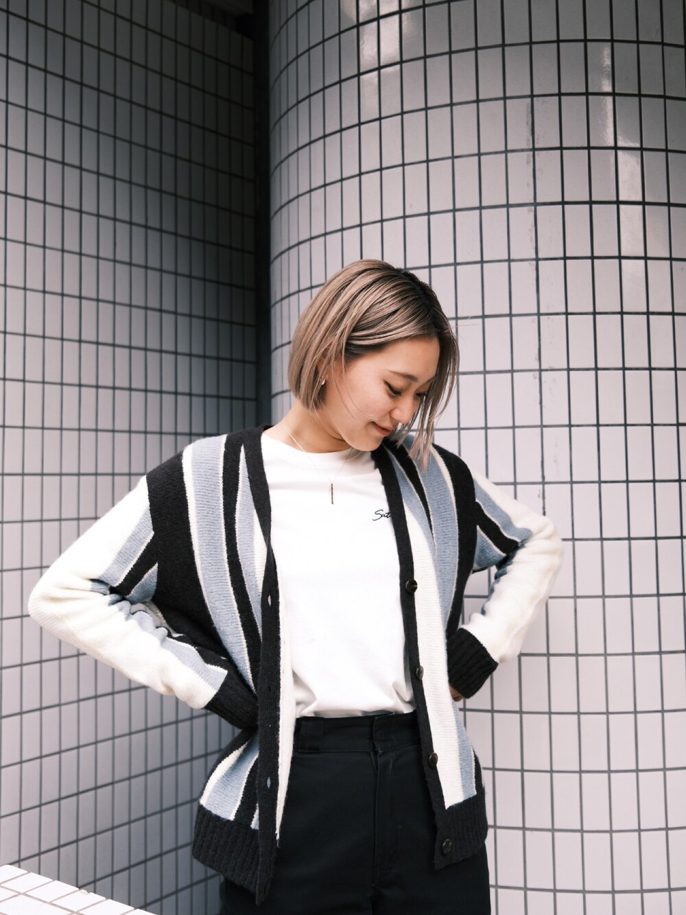 メンズのロンTにレディースのカーディガンを合わせてみました。 サタデーズらしいカラー、モヘアが30%入ってるので柔らかくてこれから暖かくなるにつれてリピートできそう♪ ロンTはスタンダードフィットなので一枚着るならオーバーサイズが○ですね。