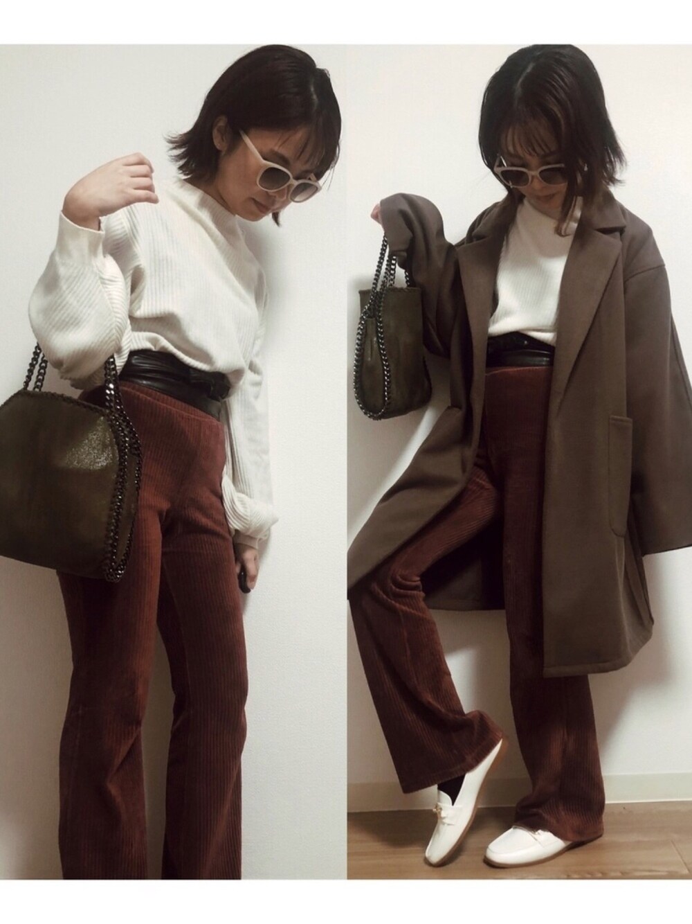オーバーサイズのコートってやっぱ可愛いわ UNIQLOのフレアパンツは3色買いしてこの冬使い倒した 腰に巻いてるのはなんかの服にセットでついてきたやつ