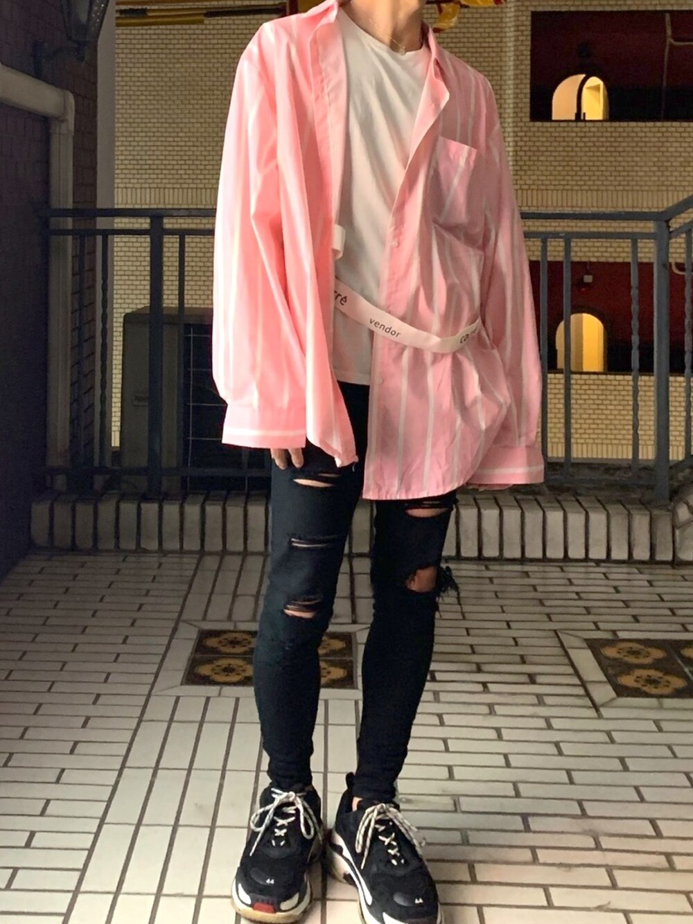 オミン【오민】 のスニーカー「Balenciaga Triple S Mesh, Nubuck And Leather Sneakers」を使ったコーディネート