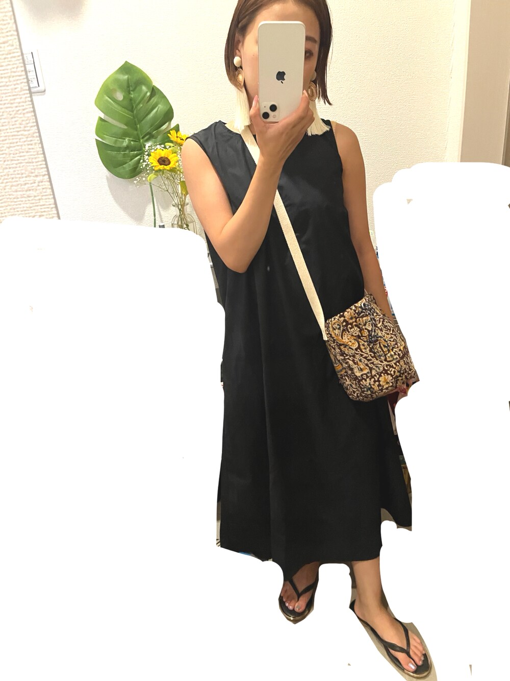 sariのワンピース「【M~3XL展開】Aラインノースリーブマキシ丈ワンピース ビッグシルエット」を使ったコーディネート