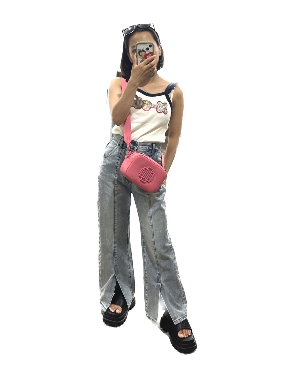 海外風ガールコーデ🏎️ ちょうどいい肌だし具合だしピンクのカバン可愛いしいい感じ🎶