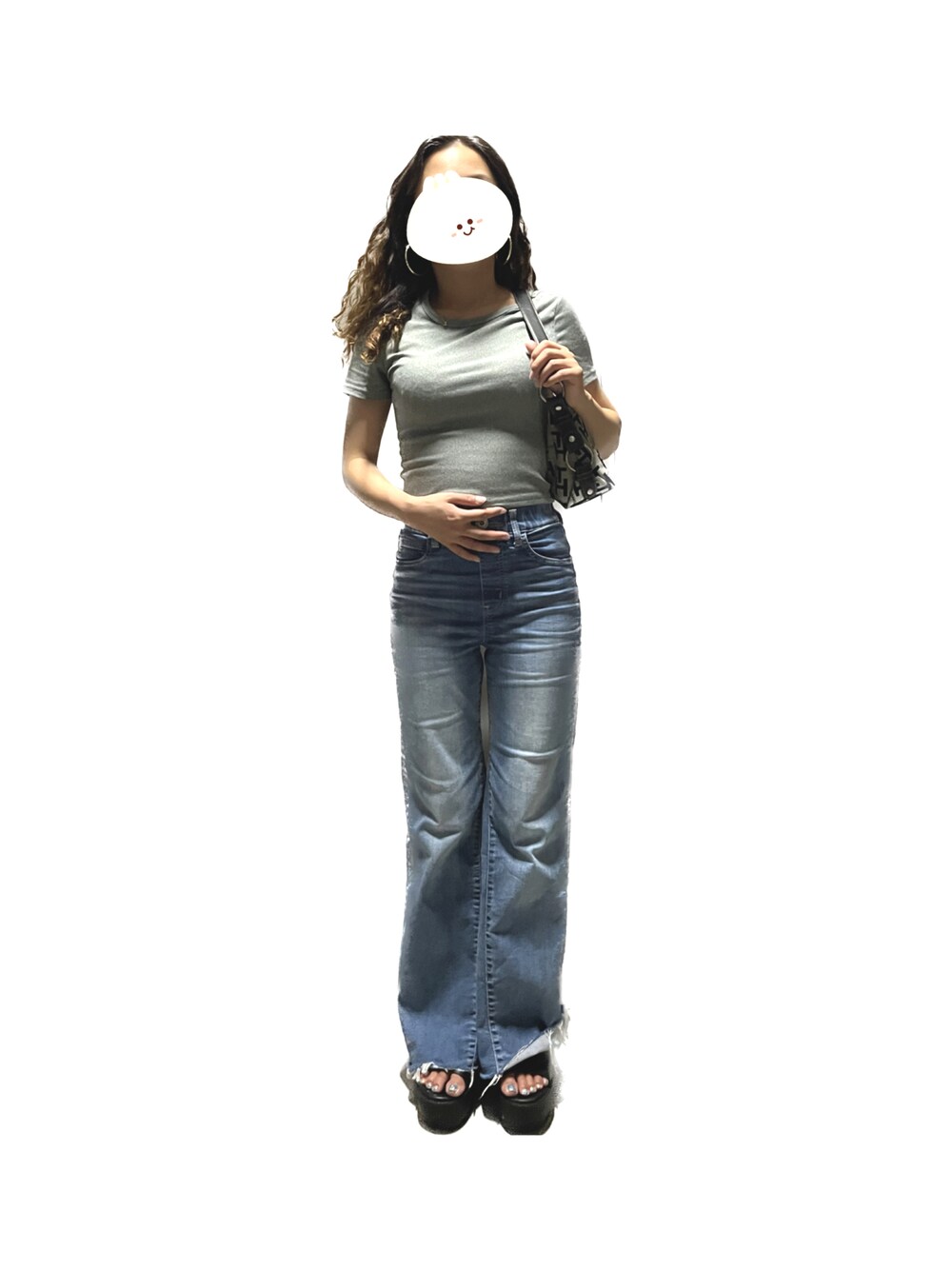 sariのデニムパンツ「リラックスフレアジャストウエスト デニムパンツ」を使ったコーディネート