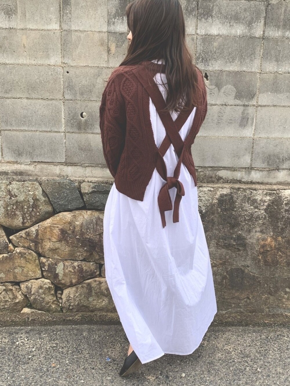 バックスタイルがかわいいニット🧶 ワンピースはアーバンの👗 夏用だけど合わせたくてひっぱりだした😂