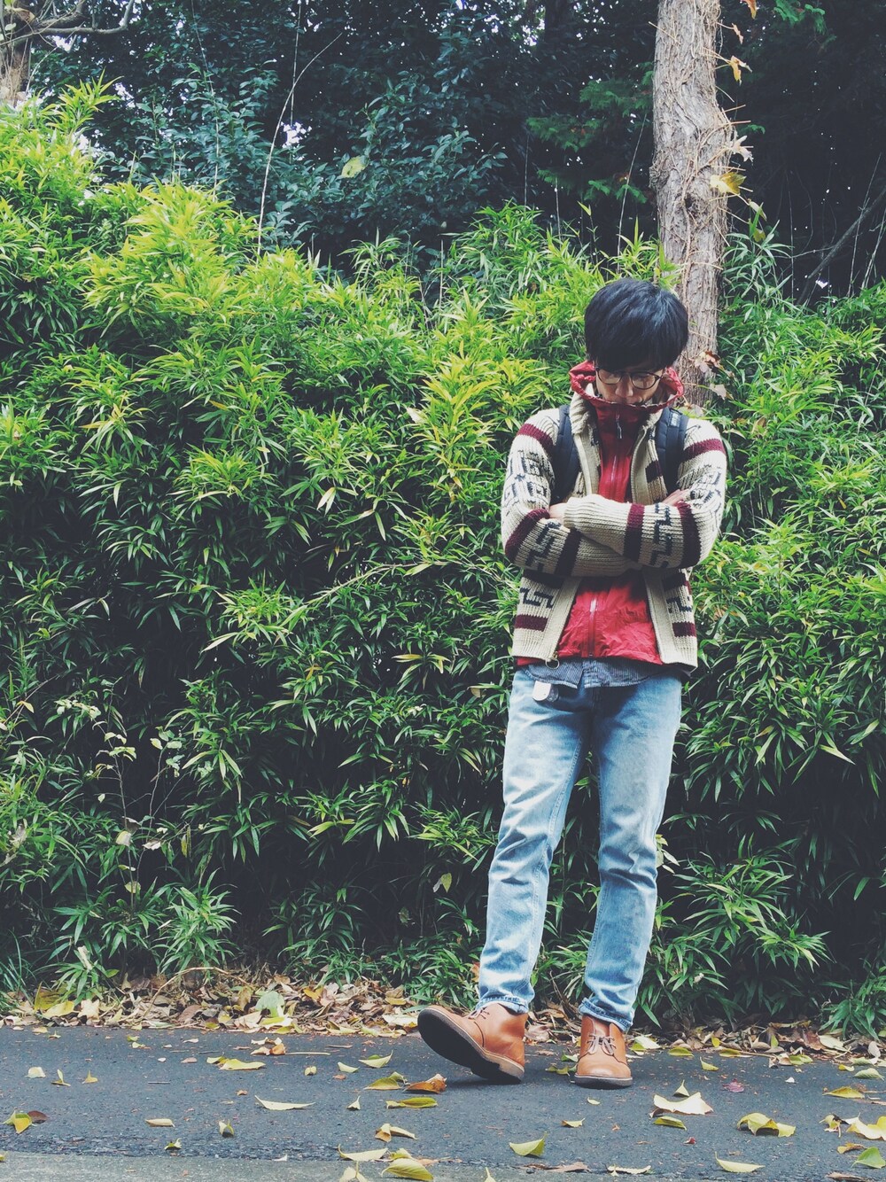 学生の時はこんな格好ばっかでした。 twitter載せました。服も僕も関係ないですが見てやってください。 knit:PENDLETON parka:mont-bell shirt:GU pants:topman shoes:clarks originals glass:urban research×kaneko optical bag:lifetotem